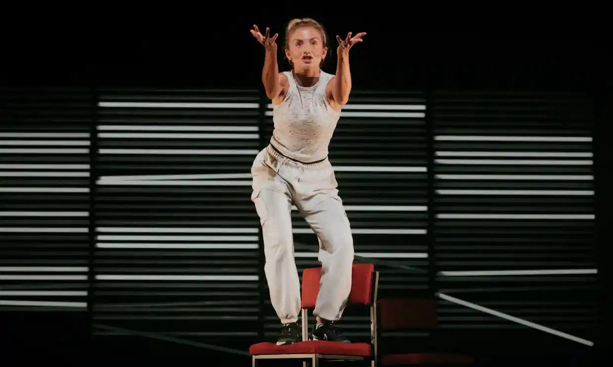 Sophie Melville gives a great performance that mixes elements of a wild Irvine Welsh character and a still Alan Ayckbourn monologue. Indeed, having just returned from the home of one-person shows, the Edinburgh Fringe, (where this show appeared some time ago) it is full of paradoxes: a monologue constrained by singularity through its form, but a production which feels peopled by an entire Welsh town. And an epic tragedy captured by a white working-class woman with no hint of ‘Vicky Pollard’ despite her scraped-back hair, snarls, three day piss-ups, hangovers and street brawls. She is eminently ordinary but exceptional in her heroism, too. And director Rachel O’Riordan must take credit for her pacing and variation of the piece — and of course, for commissioning Gary Owen’s lyrical script back in 2015.