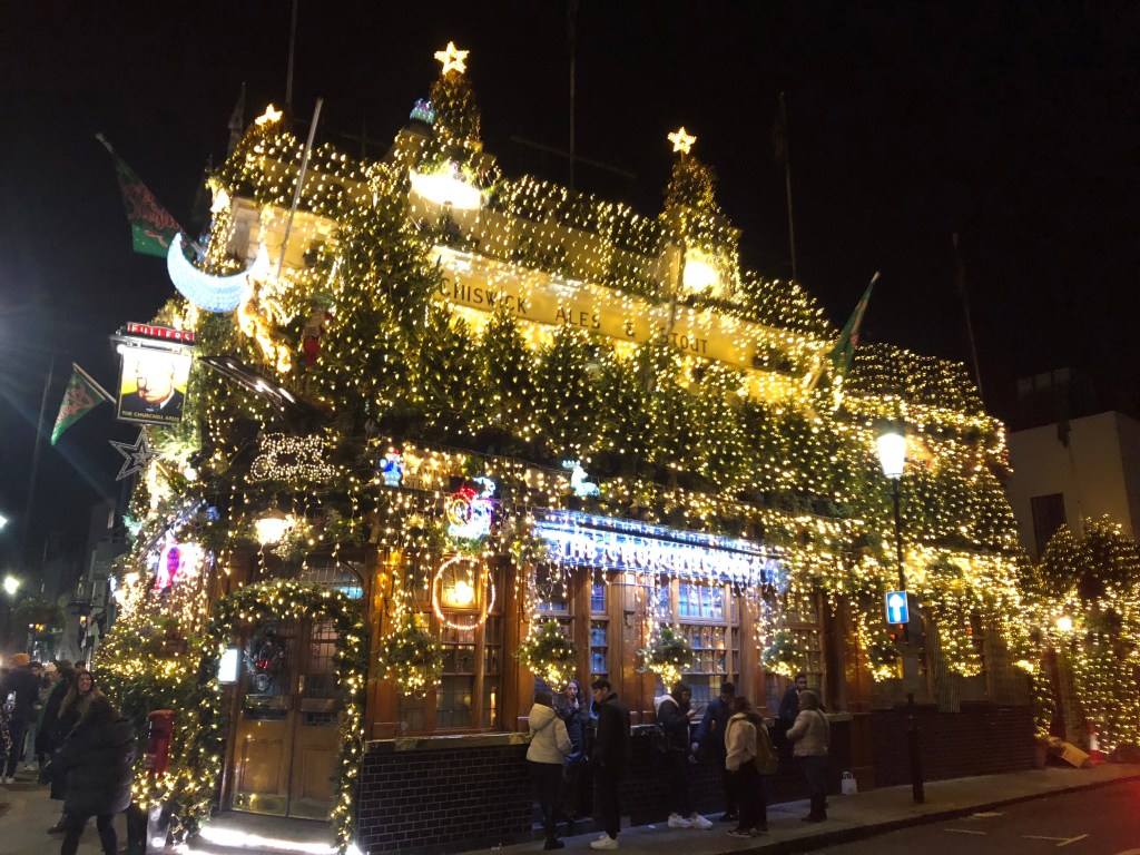 Built in 1750, the pub was apparently frequented by Churchill’s grandparents. And started by long-term ex-landlord Gerry, Fullers carry on the tradition of Xmas lights.