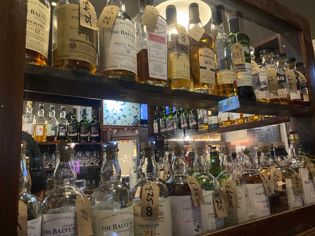 But I’m out now and I’m sitting in the pub just around the corner from the digs, The Abbey, looking at literally hundreds of bottles of Whisky as I write this! Apparently it has over 700 different whiskies! Fortunately for my liver, kidneys and wallet, I’m not really a shorts drinker, but every time I look at the bottles I cannot help think of my good friends John Slater, Guy Masterson and in an earlier life, Brian Norton, who enjoy a quality dram! I’m quite missing them at the moment – all but Brian are in Edinburgh – and I’ve had all day on my own, but if often happens if you’re creating things, so I can’t moan.