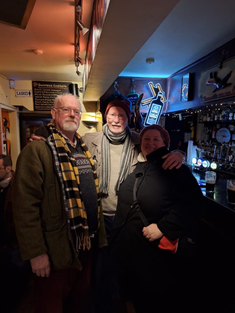 Tanya from Boston, USofA, and Dave from High Wycombe, come to the end of a fine evenings perigrinations and refreshment, in The Toucan, Soho. With writer/guide Richard.
